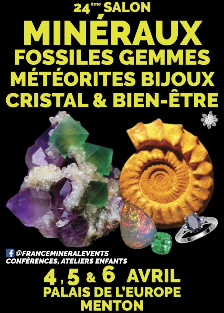 La 24ème édition du Salon des Minéraux de Menton se tiendra du 4 au 6 avril 2026 au Palais de l’Europe.