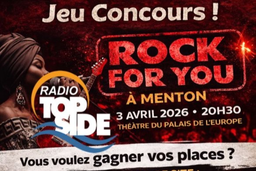 Radio Top Side vous offre la possibilité de vivre une soirée exceptionnelle ! À l’occasion du concert ROCK FOR YOU, qui se tiendra le vendredi 3 avril 2026 à 20h30 au Théâtre du Palais de l’Europe à Menton, tentez de gagner vos places dès maintenant. Un concert pop-rock unique et solidaire Organisé par M’road Cabaret, cet événement promet un moment fort mêlant musique live, danse et émotions, au profit des enfants orphelins d’Afrique. Sur scène, artistes confirmés, musiciens et danseuses se réuniront pour un spectacle vibrant et engagé. Comment......