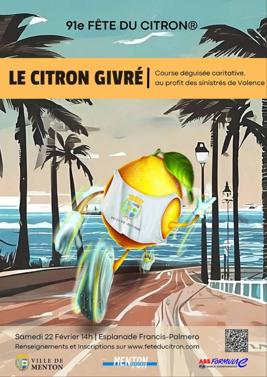 Inscriptions : ouvertes dès maintenant sur Chronosports (tarif : 15 €).L’intégralité des fonds sera reversée à l’association des Sapeurs-pompiers de Valence, en remerciement de leur soutien précieux lors des inondations de novembre dernier. Ce geste témoigne des liens forts entre Menton et Valence, deux villes jumelées, notamment par la fourniture d’agrumes pour la Fête du Citron®.