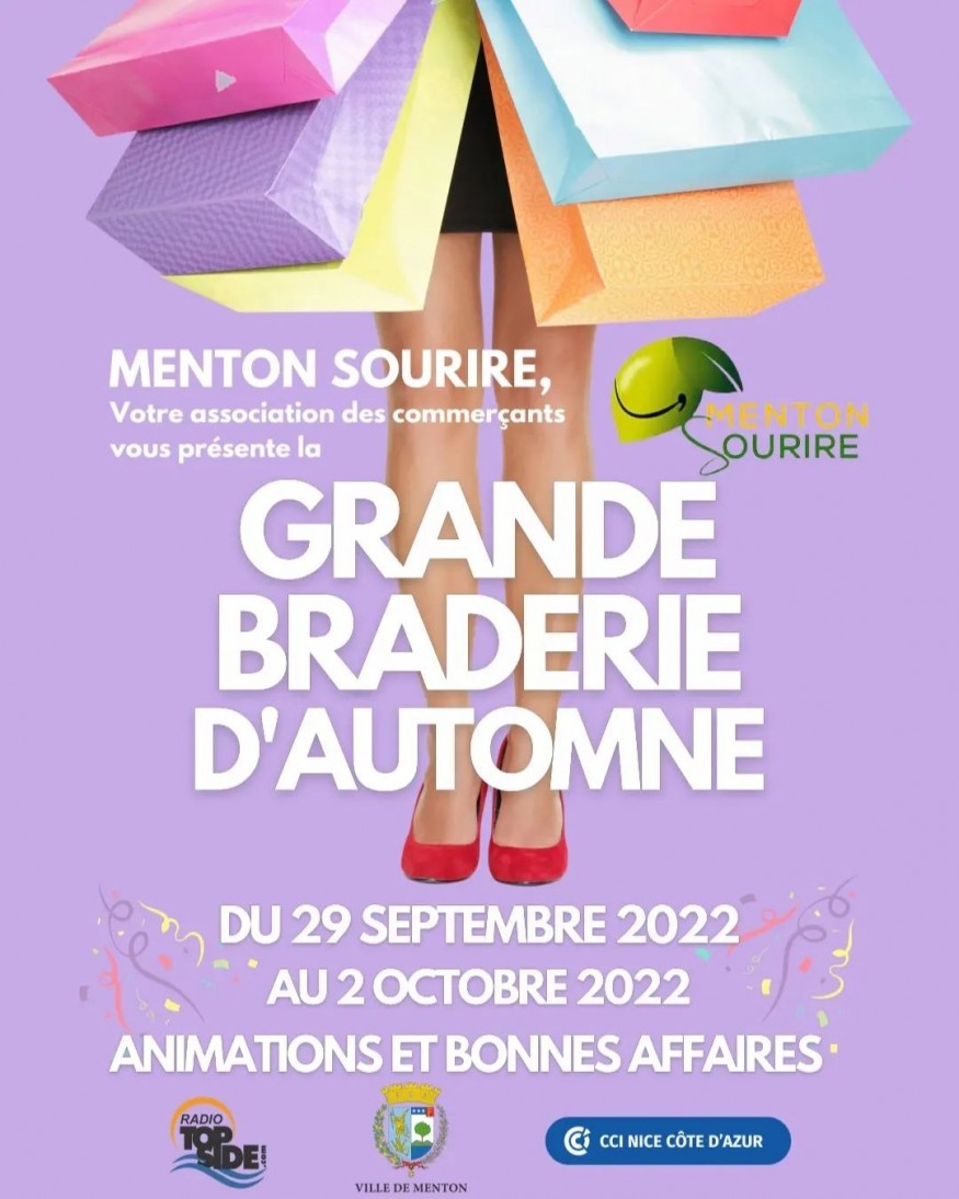 L’association des commerçants Menton Sourire vous donne rendez-vous pour sa grande Braderie d’automne à Menton du 29 septembre au 2 octobre.