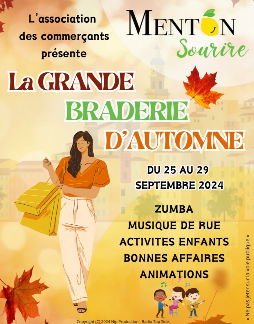 L’association des commerçants “Menton Sourire” vous donne rendez-vous pour sa grande Braderie d’automne à Menton, du 25 au 29 septembre.