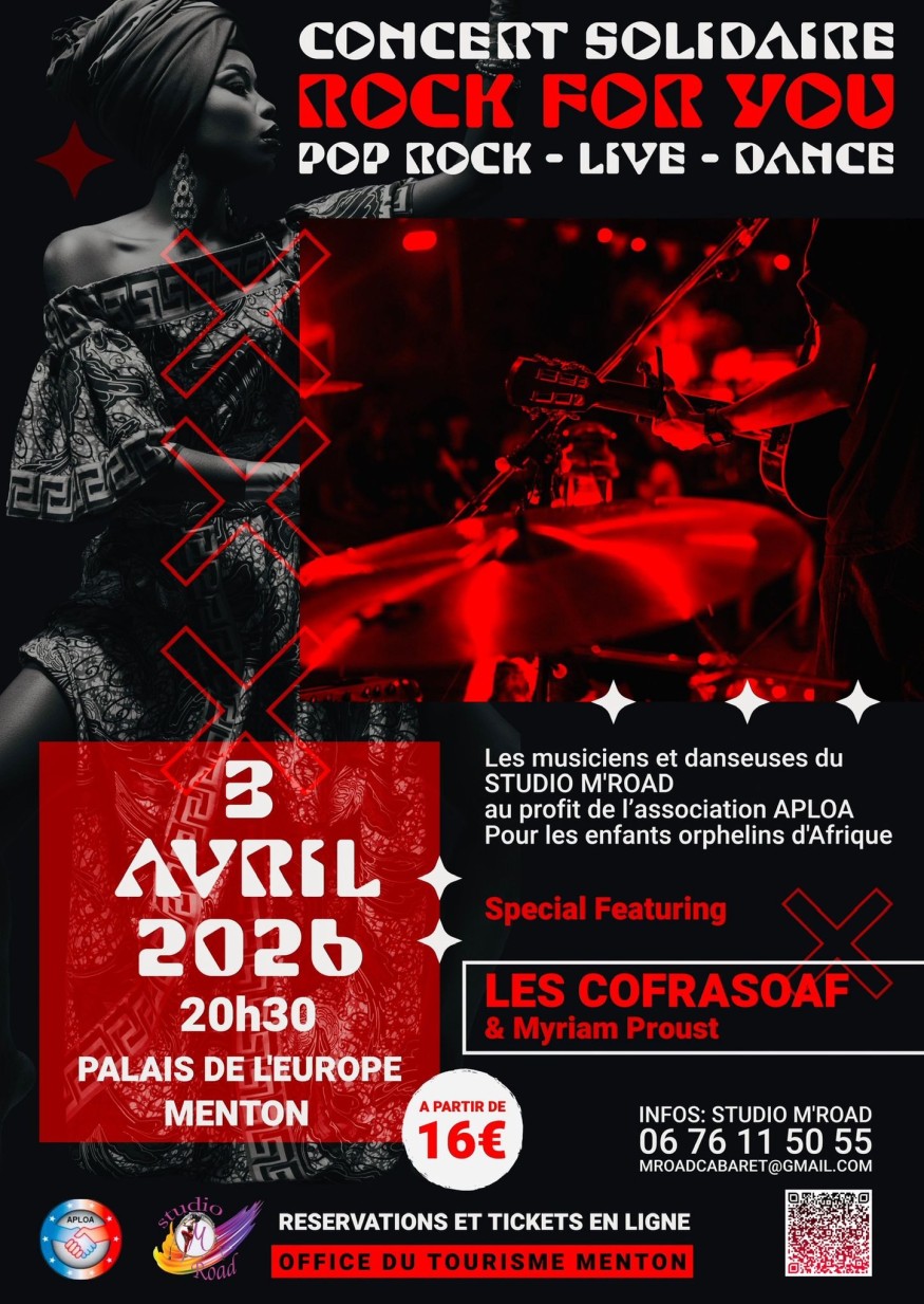 Un grand moment musical et solidaire se prépare à Menton. Le vendredi 3 avril 2026 à 20h30, le Théâtre du Palais de l’Europe accueillera ROCK FOR YOU, un concert pop-rock exceptionnel organisé par l’association M’road Cabaret.