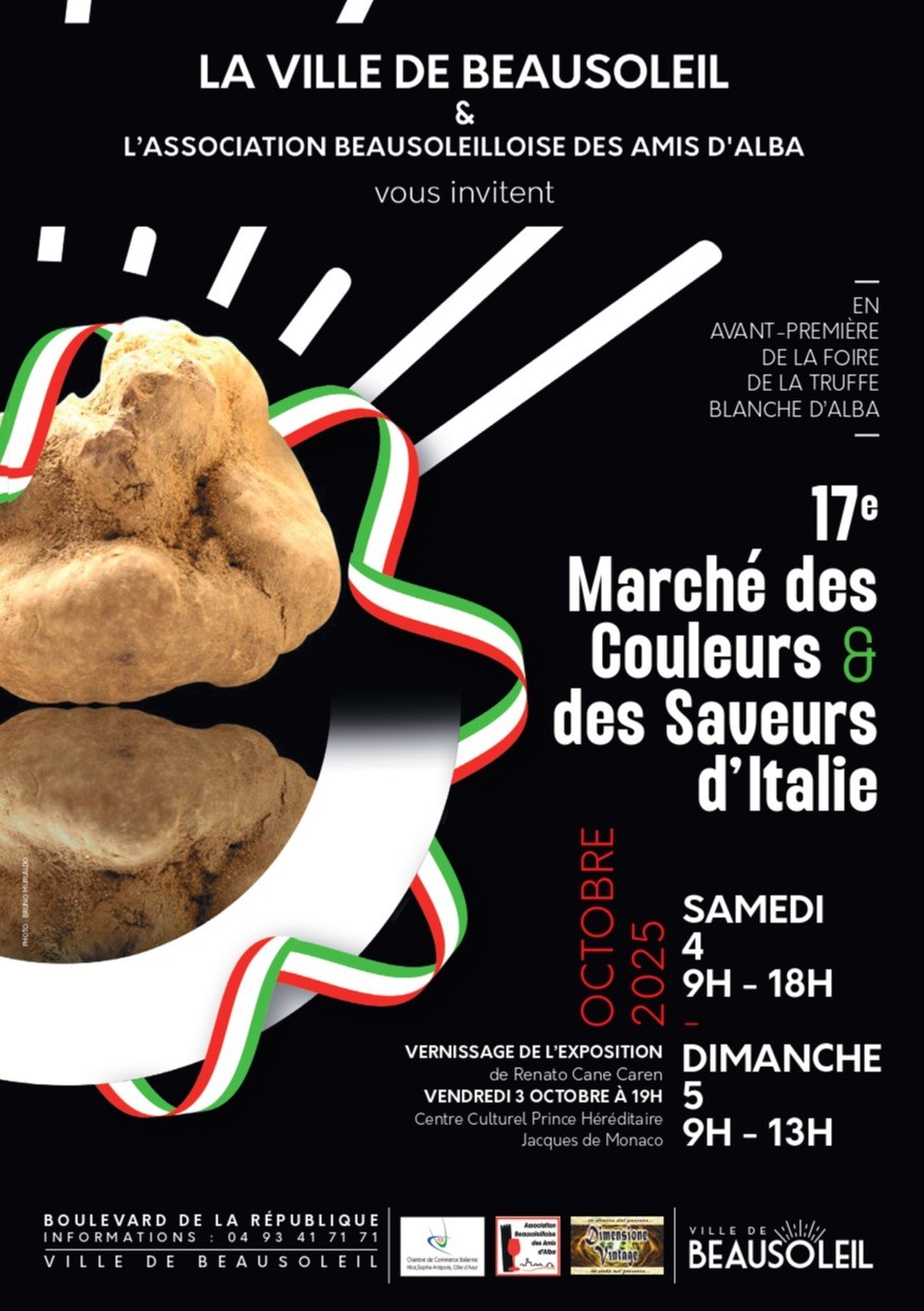 Beausoleil vivra à l’heure italienne le temps d’un week-end, avec la 17e édition du Marché des Couleurs et des Saveurs d’Italie, les samedi 4 et dimanche 5 octobre 2025.