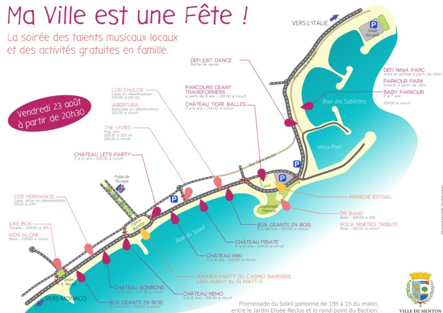 Cet événement festif proposera un concert à ciel ouvert, des animations pour les enfants, des déambulations musicales, des structures gonflables, et bien d'autres surprises. Le littoral mentonnais sera animé, offrant une soirée mémorable pour les petits et les grands.