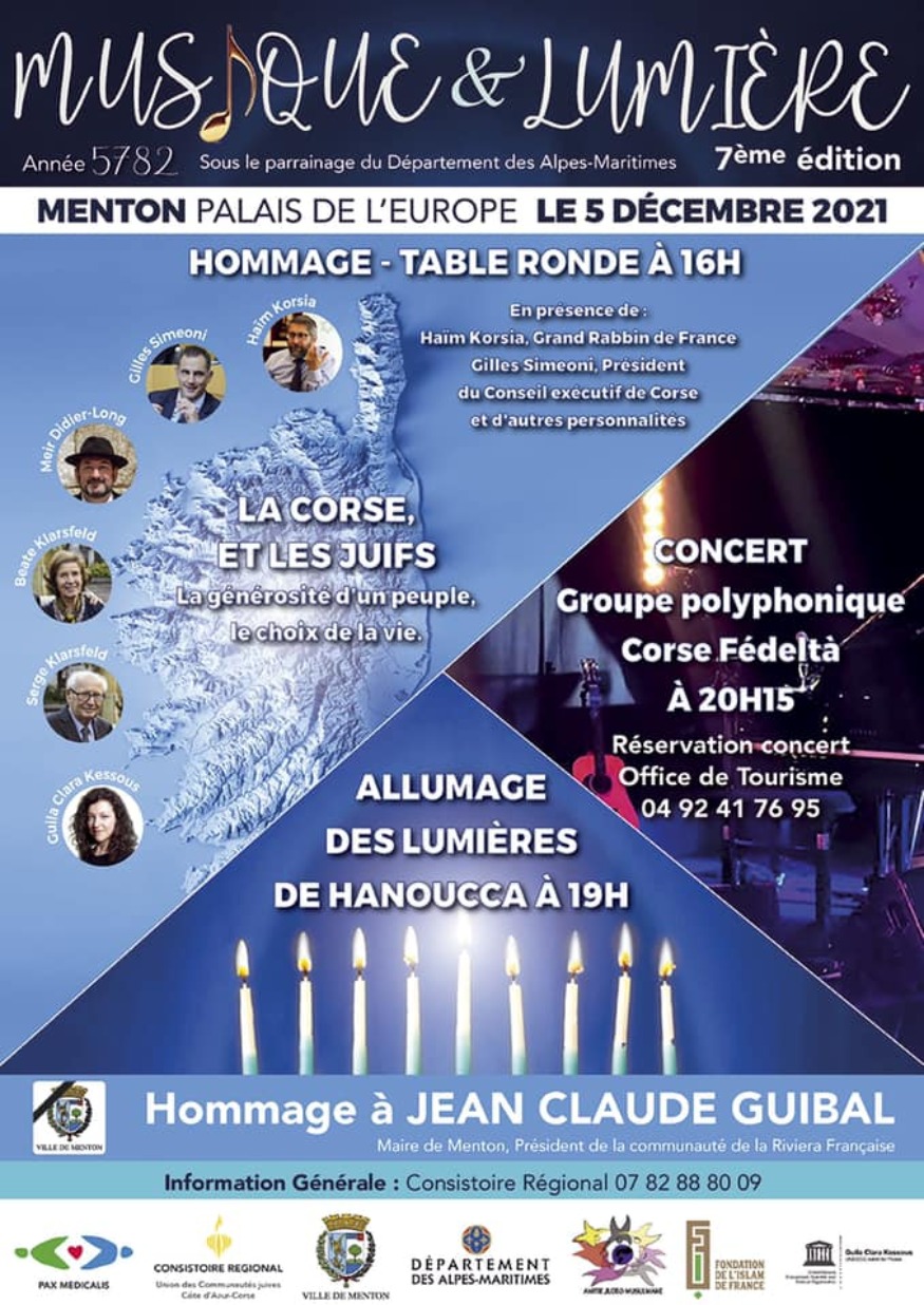 Lumière, Corse et Musique seront associés en trois temps forts le 5 décembre 2021 au Palais de l’Europe à Menton :
