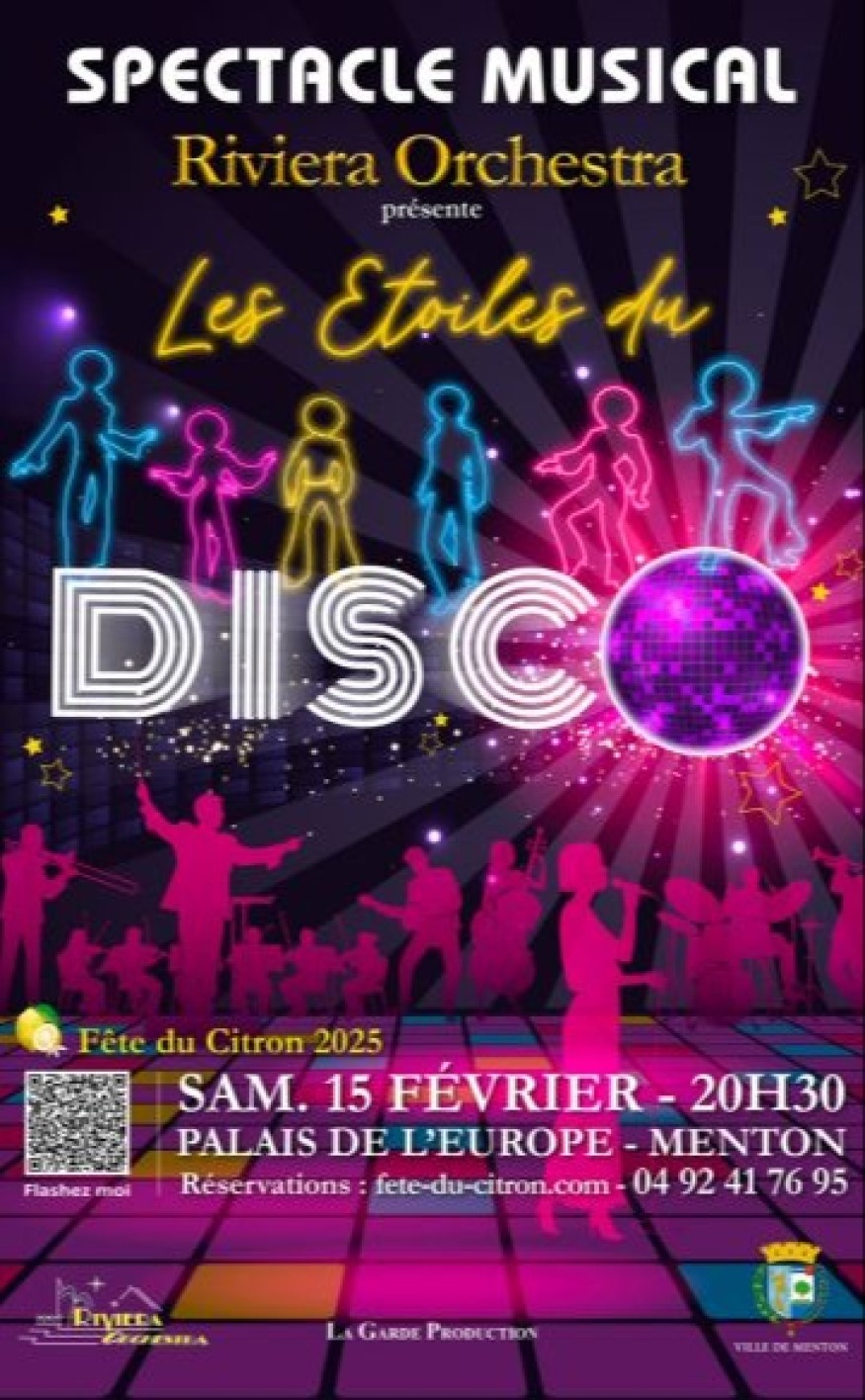 Le Riviera Orchestra, accompagné de ses 50 musiciens, chanteurs et danseuses, vous transporte dans l’univers légendaire du disco. Revivez les tubes intemporels de Abba, Donna Summer, Gloria Gaynor, et bien d’autres, dans une ambiance festive et survoltée !